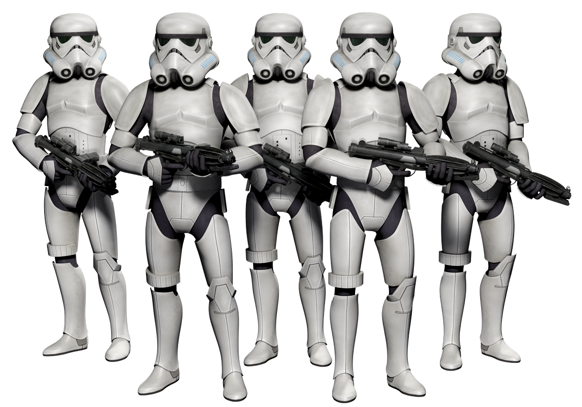 Por fim, temos os leais soldados do Império os Stormtroopers, a quem os nossos amigos rebeldes se referem como "cabeças de balde". ;)