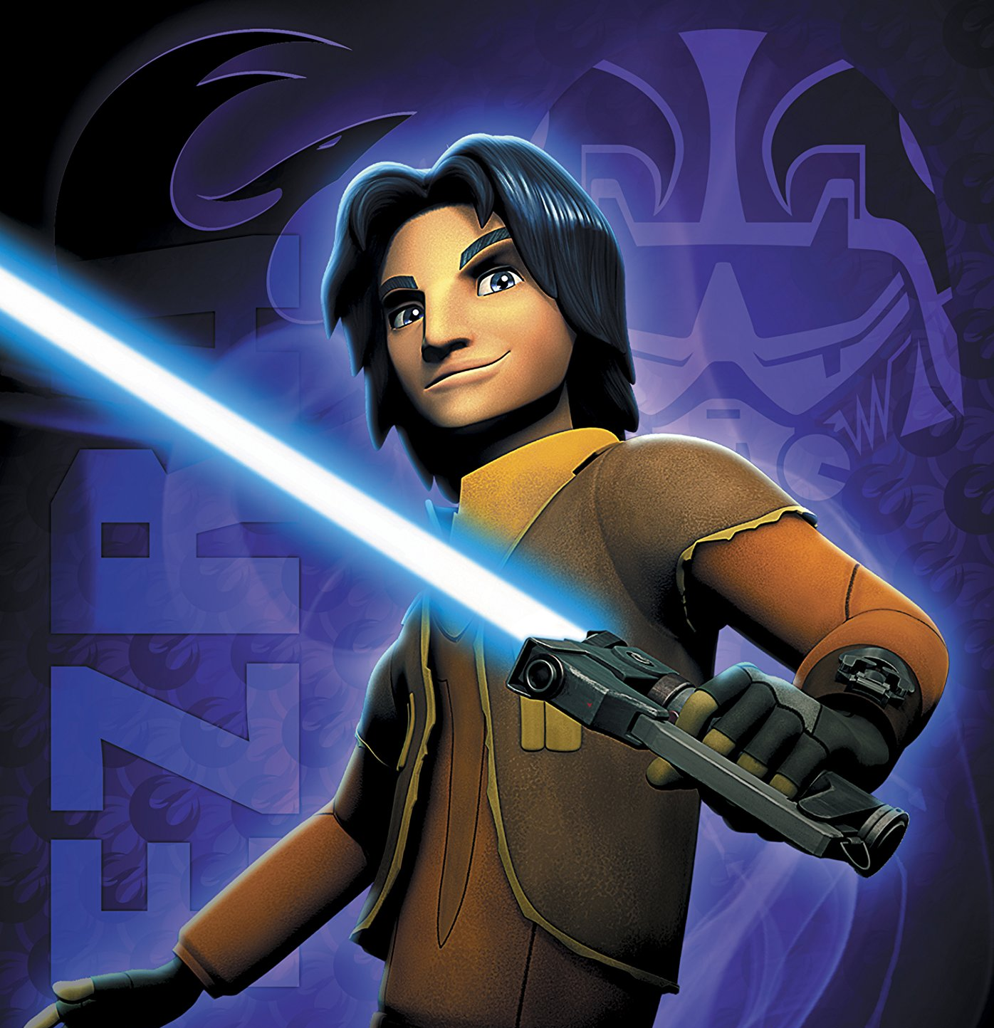 O sabre de luz de Ezra tem um design único, produto de uma era menos civilizada. Nenhum Jedi da velha Ordem teria pensado em inserir um blaster no cabo do seu sabre de luz. Porém, para Ezra, a sobrevivência é mais importante do que a tradição.